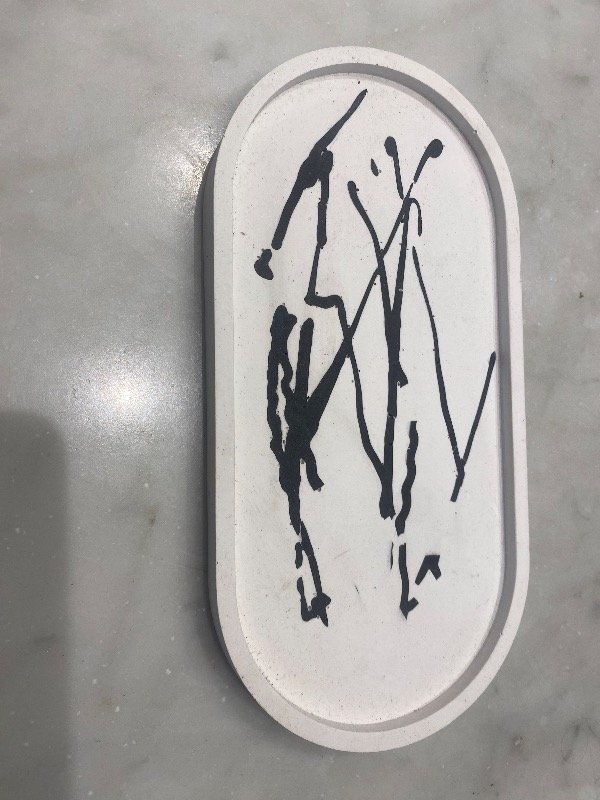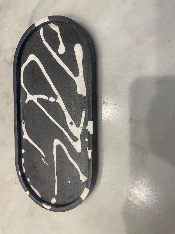 Bandeja ovalada realizada artesanalmente en material resina acrílica .